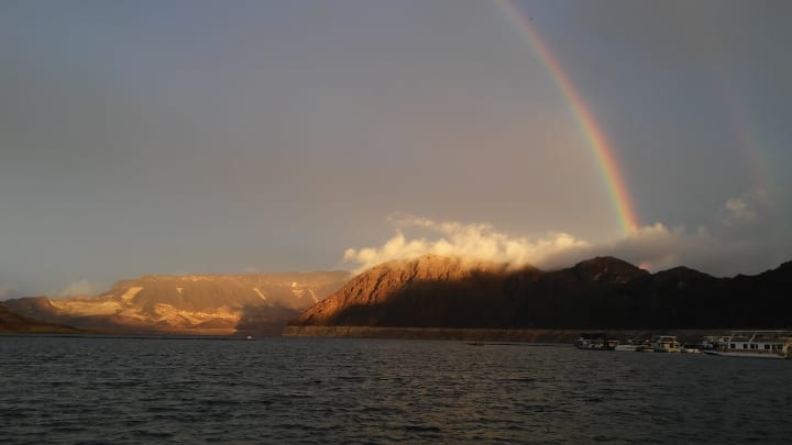 "Oh yes, it's much more than gambling and casino's! Wide open spaces to take your quad's, ATV's and Enduro's with trails that take you from the city to real ghost towns like Goodsprings...And boating on Lake Mead!", not only consist's of going out for a joy ride. The lake in all it's vastness is enormous, breaking into four arms which cover deep canyons with steep, rocky cliffs along the indecisive, but beautiful Colorado River. "Many times we have been out boating", I gleefully recall, "and hear a splash in the water, only to look up just in time to witness one of the local Bighorn Sheep testing gravity, it seems, alongside a sheer cliff!"