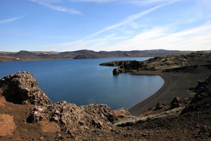 There are many lava fields since the town was built on 7,000-year-old lava rock. Among the geothermal attributes to the town is Kleifarvatn Lake, the subject of local folklore.