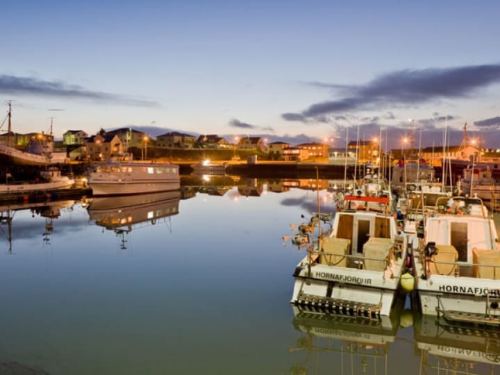 Hofn is a charming fishing village on the southeast coast of Iceland surrounded by glacial lagoons. It is close to the Vatnajokull glacier which is the largest in Europe. There are smaller islands off the coast of the village.