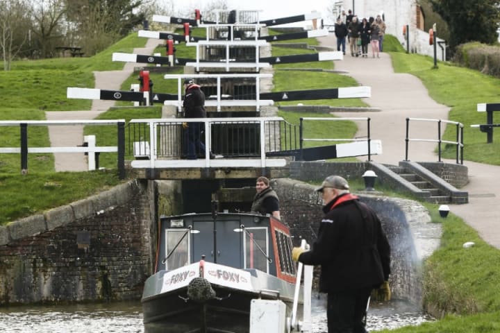 The view from the Top lock is stunning, and it's always a joy to see the barges traveling up or down the staircase of ten locks, which takes around 45 minutes to complete. Those locks do get busy during the Summer months, they are manned from Easter to October. At the top lock is the Top Lock Coffee Shop, I fully recommend their coffee! So why not grab a coffee and a bite to eat, and watch in amazement as the barges travel the staircase.