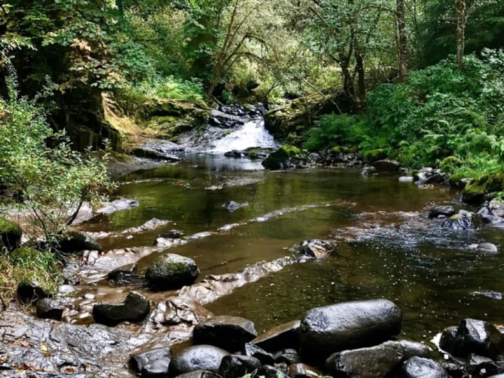 I am recounting my experiences in Oregon from the state managed Cabins at Tim Ford and after my river walks in Gatlinburg, with rooms with balconies over babbling creeks (Yes I have written and edited this story to share later). But my experiences in Tennessee are my attempts to recreate my experiences in Oregon. I crossed many creeks in Siuslaw National Forest. These paths are enjoyed by the masses, for free. I crossed this creek: