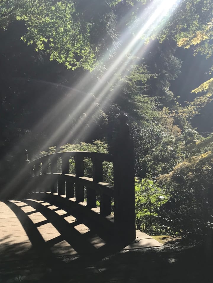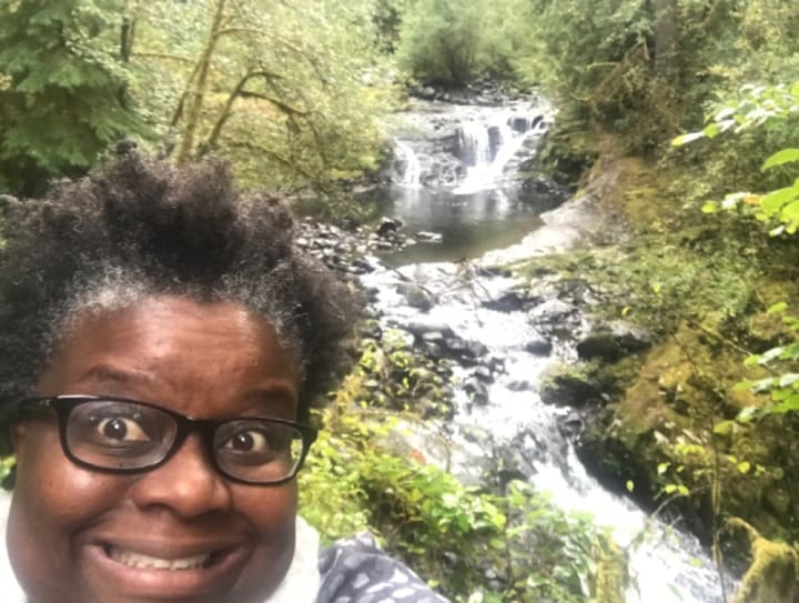 I captured my Oregon experience in a series of photographs and selfies with waterfalls. I hope to tell the story of each still in a continuous way to connect each like a script for a movie reel or for a tourist shoot highlighting the possibilities and contradictions held in one state. This story is feast for the senses forging for ingredients at the Farmer’s Market to prepare great food in my RVs kitchen, walks to a restaurant specializing in Gourmet Offal. I hope my description of my white knuckling crossing of many bridges, to paths through primordial forest, paths less traveled accidentally, being led by Google to logging roads, the natural hot springs, spiritually guided walks through the gift of the Japanese gardens, or footpaths to inland seas at the top of dormant volcanoes will encourage the reader's next big adventure. Yes those different places and environments are still in Oregon. So many riches in just one state, right?