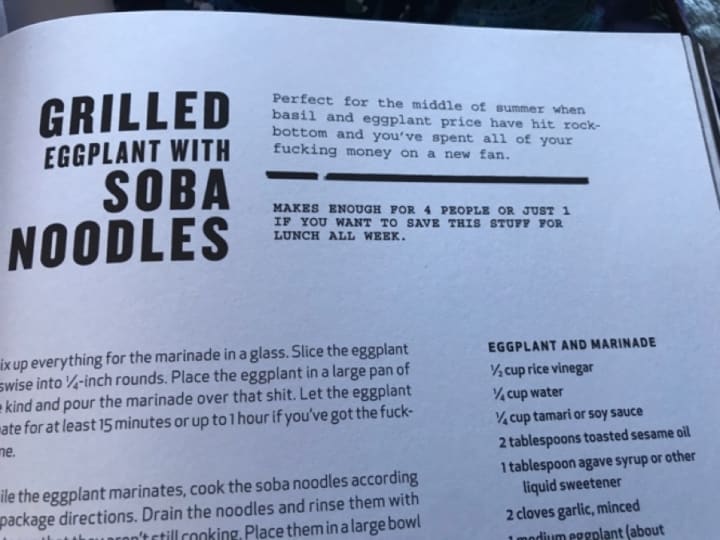 One of my prized gifts was from an East Coast Bestie, Thug Kitchen, with recipes easily prepared in my RV kitchen. I would follow the recipe expertly, in my opinion anyways, for grilled eggplant and soba, thankful I had a real kitchen in my RV and I found all the vegetables in the farmer's market.