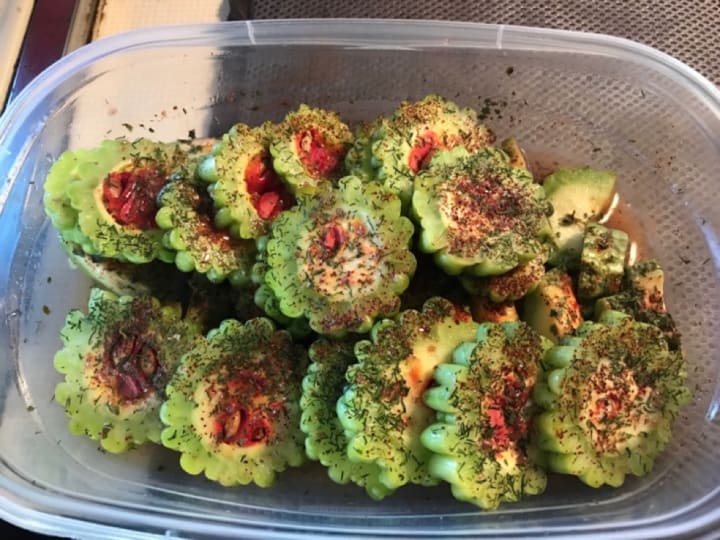 Some finds you have to acquire a taste like bitter melon, salted with sea salt, dill, smoked paprika, and crushed red peppers.
