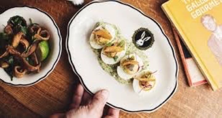 I would experience Deviled Duck and Pork Rinds: