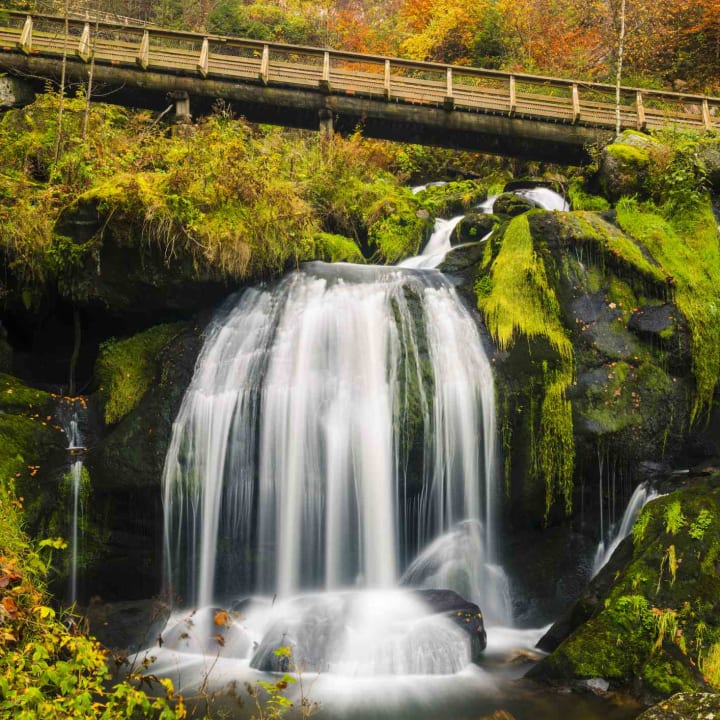 Southwest of Baiersbonn, a wooded path takes you to the 60-meter Sankenbach Waterfalls.