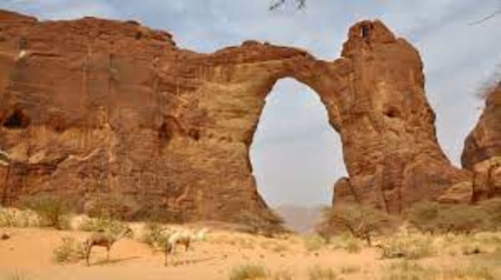 Aloba Arch in the African city of Chad is considered to be the 4th largest known natural arch in the world. It is located in the Ennedi Range of the Saharian Desert. It was carved from sandstone over many years of erosion.