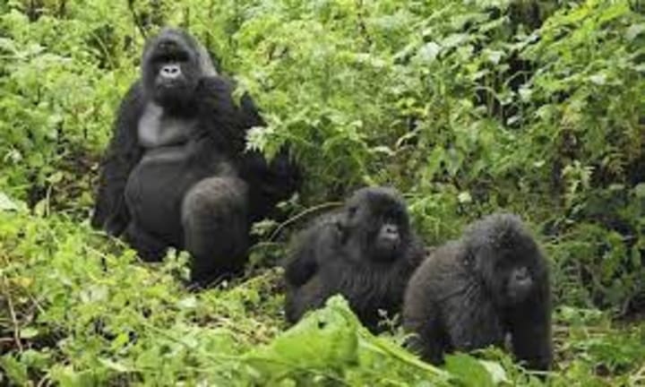 The Virunga Mountains stretch along the borders of three African countries - Uganda, Rwanda, and the Democratic Republic of Congo. These mountains are home to the endangered mountain gorillas.