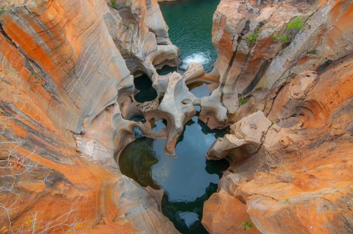Bourke’s Luck Potholes in Blyde River Canyon were created by rough water that flowed into the canyon. The potholes were named after a gold digger named Tom Bourke. When you walk into the canyon you’ll soon find this unusual natural water feature.