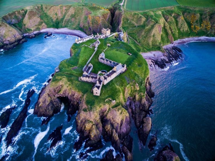 Dunnottar Castle is spectacular. On the east coast of Scotland a few miles south of Stonehaven, the fortress sits perched on a rocky headland jutting into the North Sea.