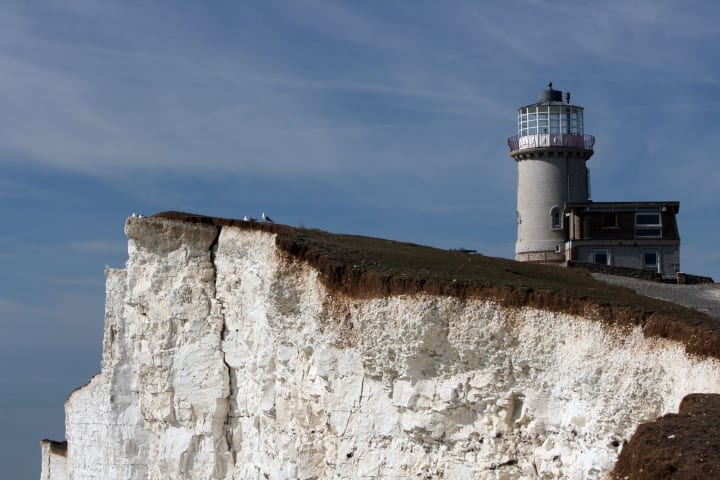 The best view of the Seven Sisters, except from out at sea, is from Seaford Head to the west, as the land sticks out into the sea at this point and affords a view all along the coast as far as the Belle Tout lighthouse (now used as a guesthouse, the lighthouse had to be moved back from the cliff edge in 1999 to prevent it from falling into the sea!). There is a track that leads across Seaford Head down to sea level, with the view changing all the way. Seen from the beach, the full height of the cliffs can best be appreciated.