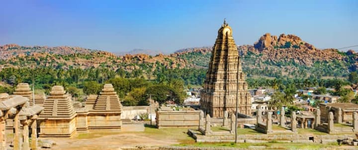 Hampi is a temple town located amidst the ruins of Vijayanagara, Karnataka. It is a collection of all the ancient Hindu temples, representing the rich cultural heritage of the region.