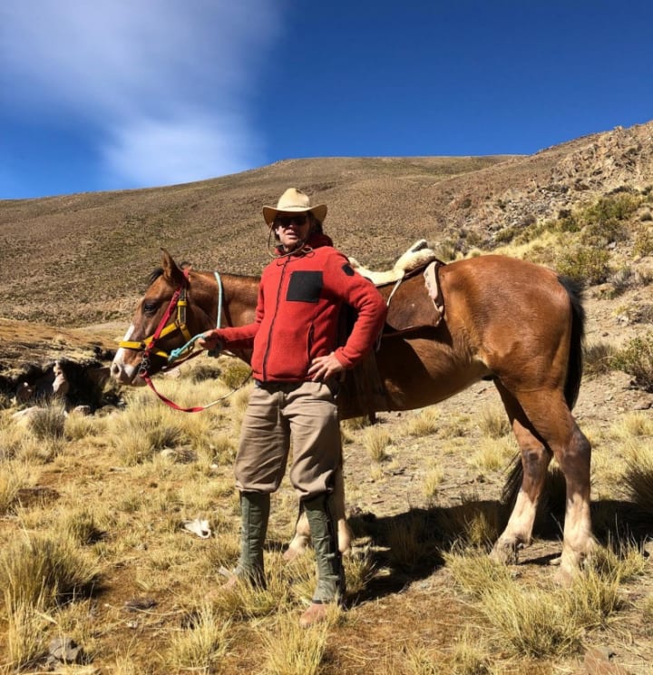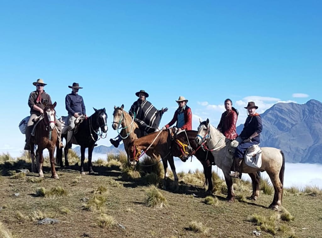 On the right, the hissing sound of the river hundreds of meters below us reaches my ears. The narrowing small trail in front of me pulls all of my attention towards its ascending rocky pulse. At my left, I smell fresh green moss growing in the moist shades of the red stone wall rising above us like a massive cathedral. Trees and branches hide the immediate steep descent towards the valley and the river. I focus on the soft towing sounds coming from the hoofs of my horse Nasir, just centimeters from the abyss. This soothing rhythm will become my compass of faith and surrender for the coming 5 days as we ascent the North Argentinian Andes. Leaving our loved ones, our homes, and constant Wifi connection behind. We are about to meet the Indian spirit high up in the mountains. I am looking forward to this digital detox, but can't grasp at that moment that this trip is going to change my life forever.