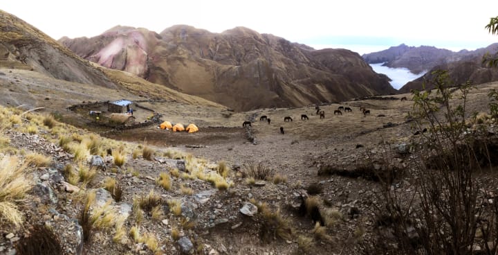 A serene purity spreads over the evening as the condors settle for their nests and the creepy mist dissolves. We, the white Cowboys, sit apart drinking and eating while our guides gather around a small fire cracking jokes. Probably about us, the Andes initiates. The horses produce satisfied noises in the distance, enjoying their change of scenery and a well-deserved rest.