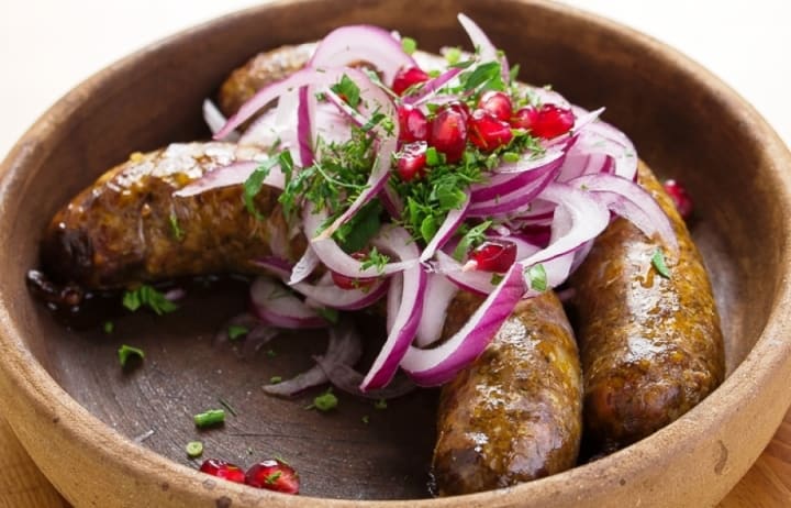 Kupati is a traditional dish, especially eaten in winter. These spicy sausages, made from pork and offal, are often served with Tkemali, a sour plum sauce that perfectly complements the spicy flavor.