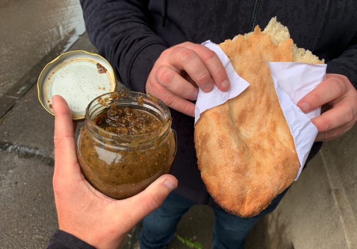 Georgian bread is traditionally baked in a clay oven, which gives it a crispy crust and soft interior. It’s available almost everywhere in small bakeries, costing usually between 1 and 2 lari (€0.30 to €0.60). It’s so delicious and fresh that it's wonderful even without any toppings.