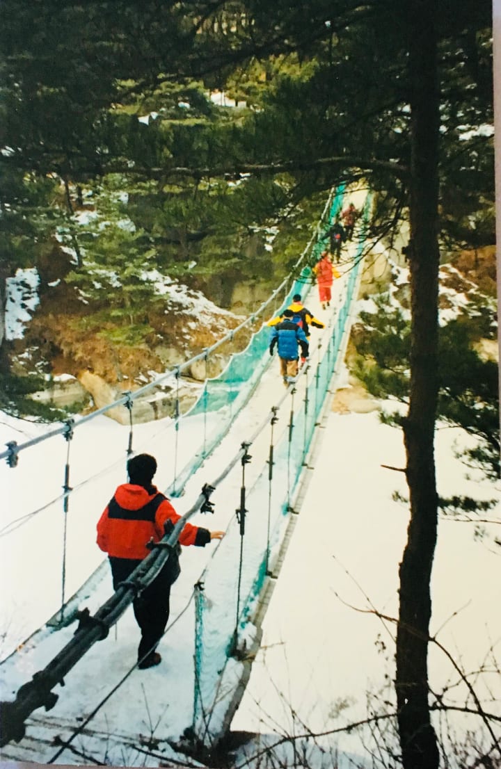 Lake Samil was heavily frozen and we undertook quite a treacherous walk across it and over the mountainside around it, including bouncy rope bridges across ravines. Even with crampons on our boots it was very slippery. I was also quite anxious that the ice might crack underneath us as we trekked across the lake.