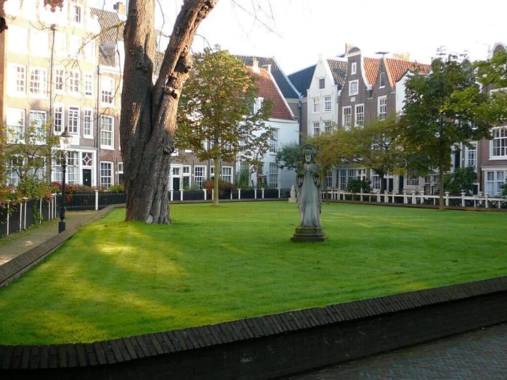 Although attached to the Catholic Church the women weren't nuns or took vows. They lived a Christian lifestyle as lay sisters with much more freedom than ordained nuns but were still accorded the title of Sisters by the outside community. During the 16th century, when the Netherlands turned to Calvinism and Catholicism was banned, the Beguines were still allowed remain and it became the only bastion of Catholicism within the country. They did maintain a clandestine chapel for a time, but that was eventually closed down. The last Sister to live there died in 1971.