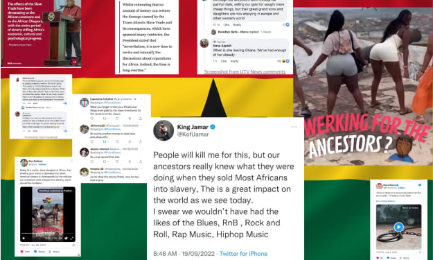 Ghanians started telling me that Black Americans treat Africans bad in America, so what you get what you deserve. At the time I didn't think to capture screenshots, I blocked them and didn't copy their comments.