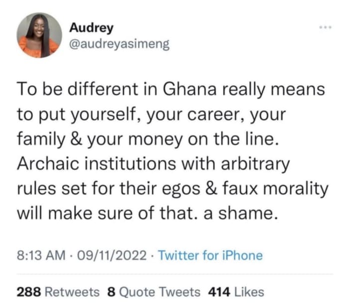 It was funny to see, that since I was not popular, famous or rich I was given hateful replies. This is what life is like in Ghana when you are different and don't have money to buy their respect.