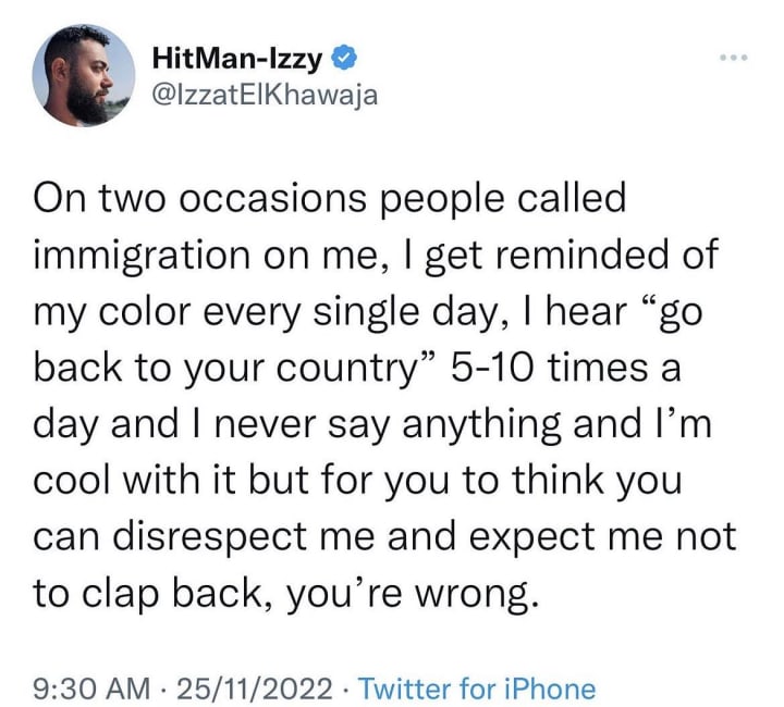 I re-tweeted his and replied that I too as a Black American am told that I'm white and to go back to my own country. The man who had almost 100,000 followers got some hate, I got a lot of hatred.