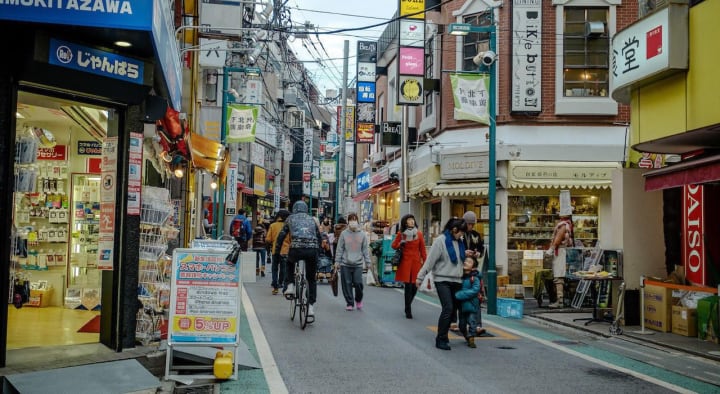 The narrow streets of Shimo-Kitazawa are hardly wide enough for cars and this makes one think of a miniature version of Tokyo. You can find students here mingling with musicians and artists. This neighborhood is lively most of the time and particularly on the weekends. On the south side, you’ll find restaurants, bars, and entertainment spots, and on the north side second-hand shops and cafes.