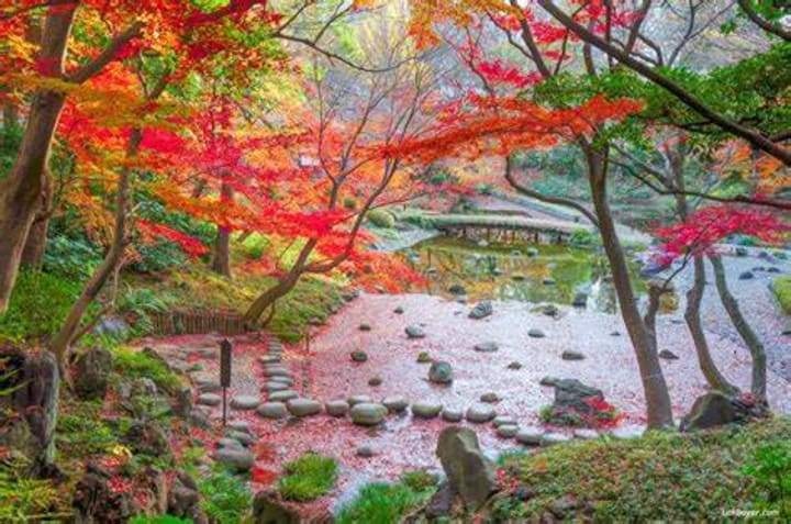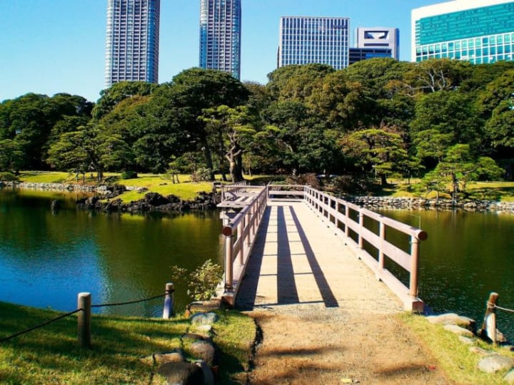Koishikawa Korakuen is a formal strolling garden that was established in the mid-17th century. It incorporates elements of Chinese and Japanese landscaping. See the Engetsu-kyo or Full-Moon Bridge dating from the early Edo period and the lovely vermilion wooden bridge Tsuten-kyo. This garden is best known for its plum blossoms in February, irises in June, and autumn leaves.