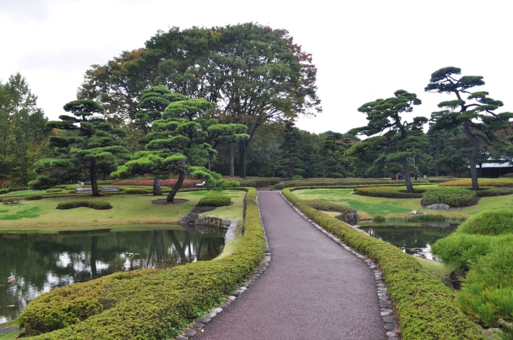 Shinjuku-gyoen was completed in 1905 and was designed to be an imperial retreat. Today it is a lovely park for everyone. There are wide lawns, a greenhouse with giant lily pads, orchids, and wonderful cherry blossoms in spring.
