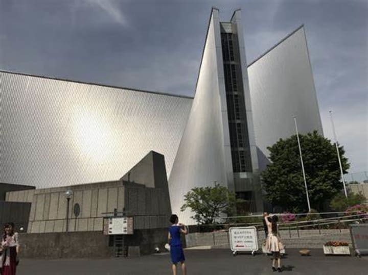 St. Mary’s Cathedral Tokyo rises 40 meters high. This is a stainless-steel contemporary cathedral that was completed in 1955. It is the work of Japan’s foremost modern architect, Tange Kenzo, and structural and acoustic engineers from the University of Tokyo. It is home to the largest pipe organ in Japan.