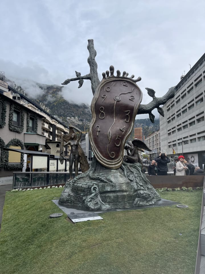 As I mentioned before, our stop in Andorra was short-only about two hours. We enjoyed a walk through the city center, stopping to take a snapshot of the famous Andorra la Vella Paris Suspension Bridge that crosses the Gran Valira River and the famous Salvador Dali Melting Clock Sculpture. Stores, restaurants, and hotels align with the streets that run alongside the river. The town is small, but everything is centrally located.