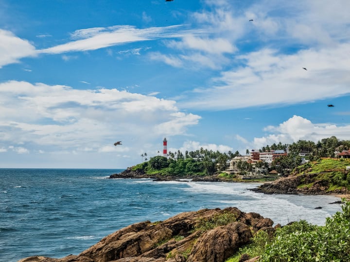 Located just 16 km from Trivandrum, Kovalam is one of Kerala’s most famous beach destinations. The crescent-shaped beaches here are ideal for sunbathing, swimming, and surfing. If you're adventurous, try parasailing or kayaking.