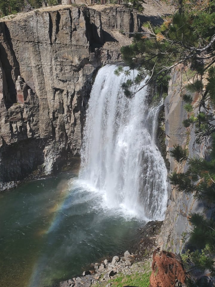 Rainbow Falls at 101-feet, is the highest waterfall on the Middle Fork of the San Joaquin River, in the eastern Sierra Nevada mountains of California. During summer, the rainbows can easily be viewed at the base of the fall. Rainbow Falls is inside the Inyo National Forest, entrance is charged by vehicle or free with a national park pass. For more information on Inyo National Forest camping, fishing and directions click here. From the parking lot, the walk to Rainbow Falls is only 2.5 miles. The dirt path and falls are pet-friendly. Many families bring picnics, wear bathing suits, and make an afternoon out of playing at the base of the fall.