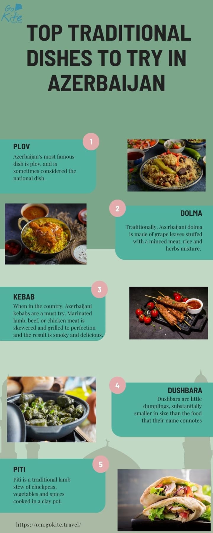 Azerbaijani cuisine will be an unforgettable culinary experience either when exploring the cities or countryside. The top traditional dishes you have to try when in Azerbaijan are as follows: