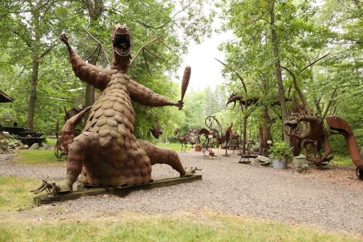 Jurustic Park in Marshfield is a unique art park and hobbit house. Visitors can wander about and discover all this amazing park has to offer. This is the creation of amateur paleontologist Clyde Wynia who excavated and recreated the now extinct creatures that once inhabited the McMillan Marsh near Marshfield during the Iron Age.