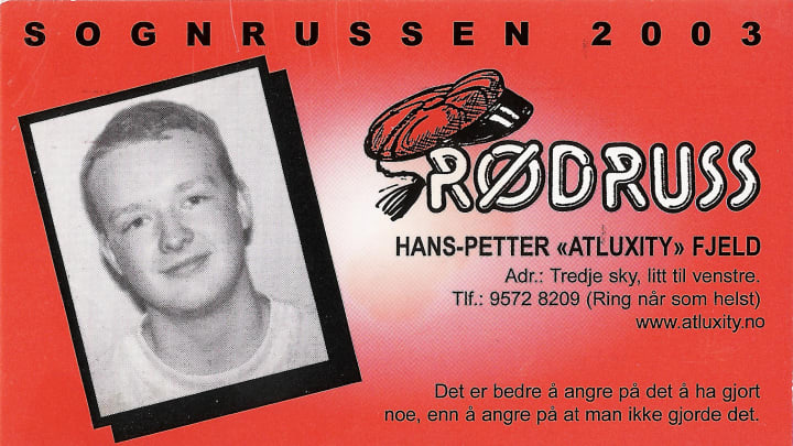 One of the most adorable russ traditions is young children collecting russ cards - "russekort". Participants of the russefeiring will have made and printed personal cards to hand out over the three weeks. The card contains details like the student's name and school, has a photo, and usually a quote and some social media contact details.