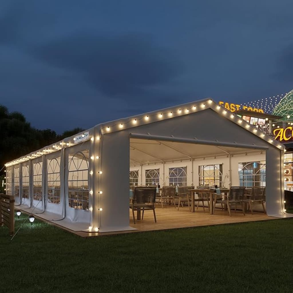 The Quictent 20x40 Party Tent Upgraded Heavy Duty Fireproof PVC Vinyl Outdoor Gazebo Wedding Canopy Carport Canopy BBQ Tent with 12 Removable Partitions (20'x40', White) is a versatile and robust outdoor shelter designed to cater to a variety of events and needs. This tent stands out for its heavy-duty construction, fireproof material, and flexible design, making it an excellent choice for hosting large gatherings, weddings, BBQs, carports, and more. Exceptional Durability and Safety One of the key features of this Quictent party tent is its upgraded heavy-duty construction. The frame is made from reinforced steel, providing excellent stability and strength. This sturdy frame is further supported by robust connectors and metal base plates, ensuring the tent can withstand various weather conditions. The use of fireproof PVC vinyl for the cover adds an extra layer of safety, making it ideal for events where fire safety is a concern. This material is not only fire retardant but also highly resistant to water and UV rays, ensuring your event remains unaffected by unexpected weather changes.