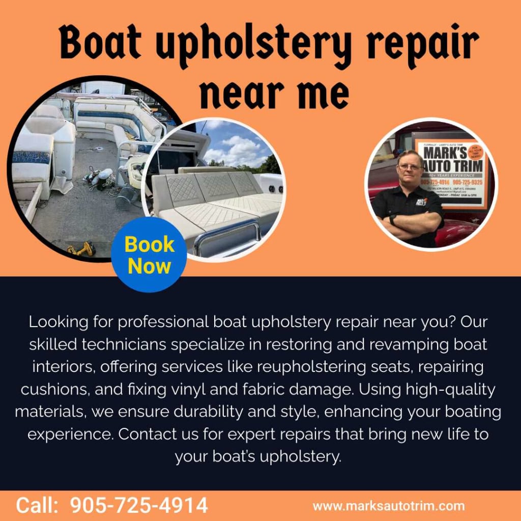 • Marine Vinyl: The best choice for any Boat seat Oshawa Ontario, sun decks, or environments where water and sun are factors.