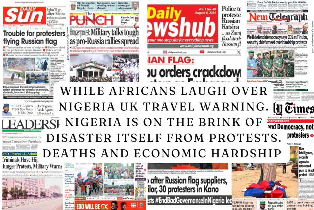 All over social media platforms you can't help but notice Africans laughing and joking about the Nigerian government issuing a travel warning to its citizens about the protests in the UK. Funny, right?