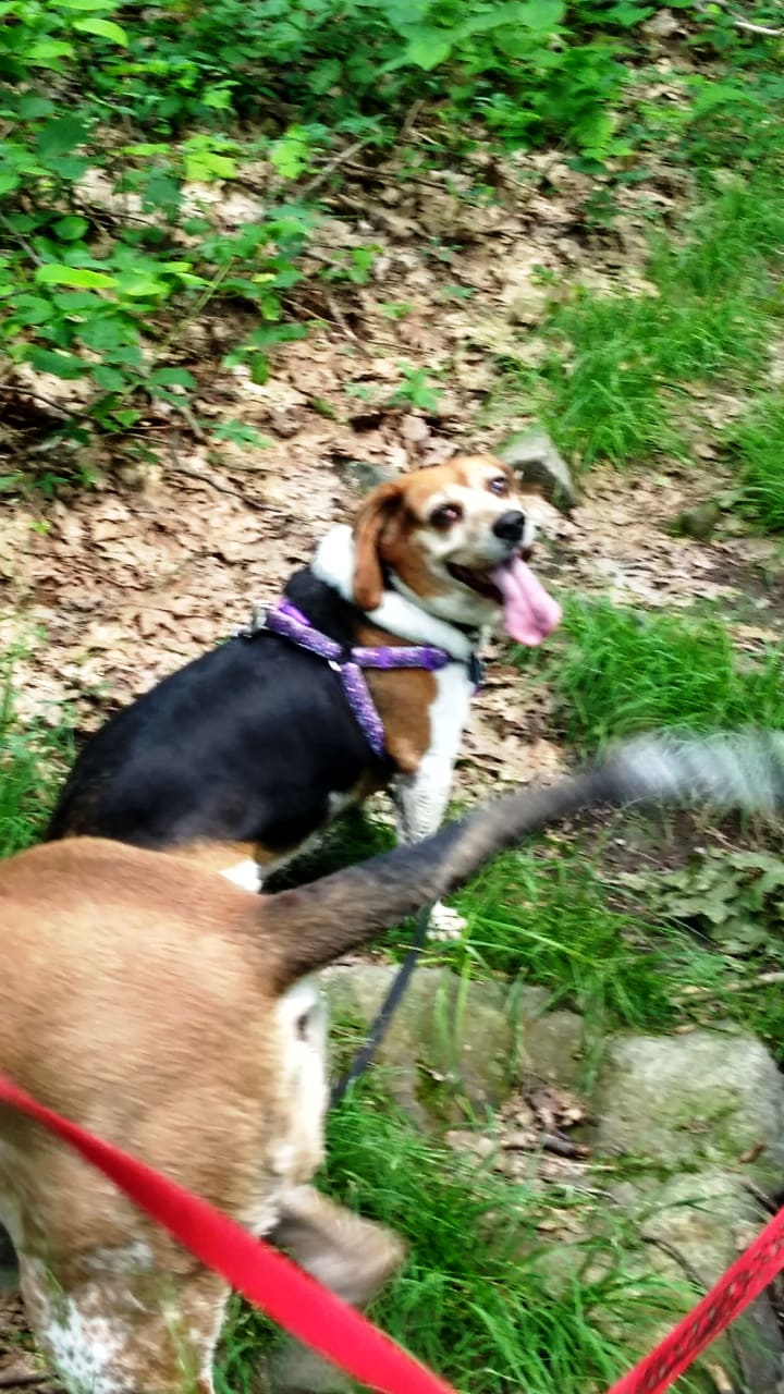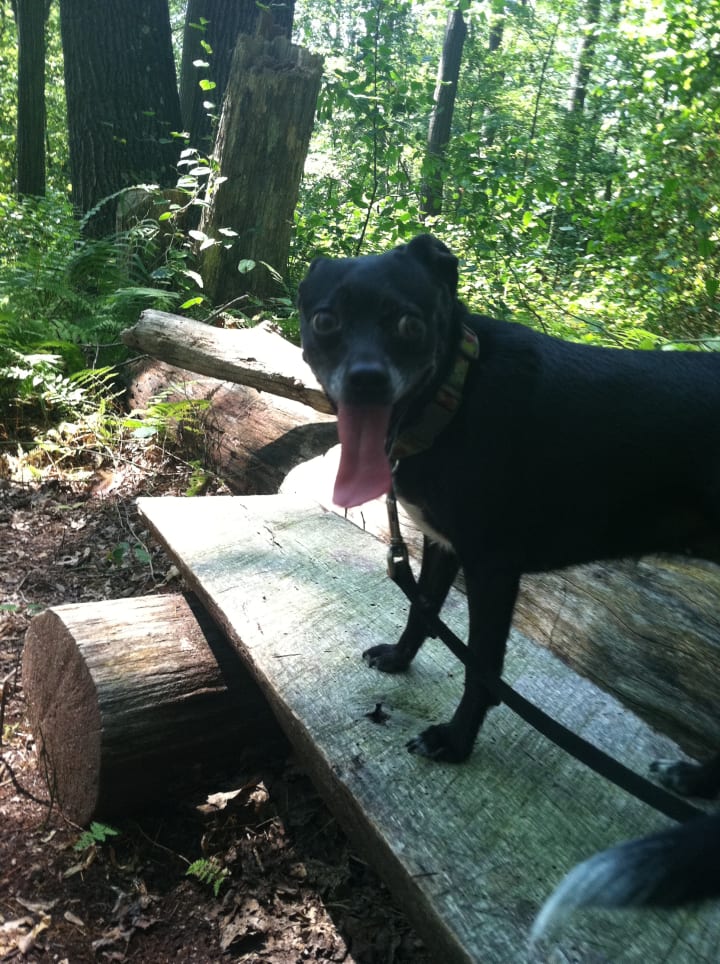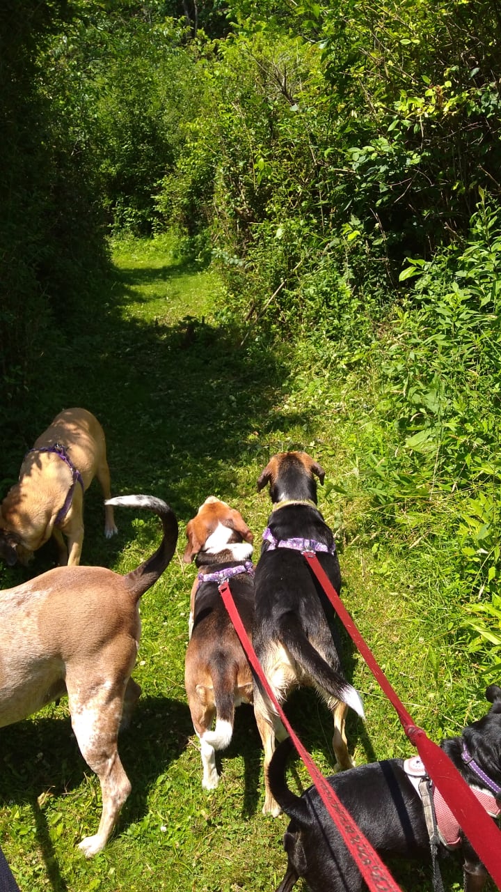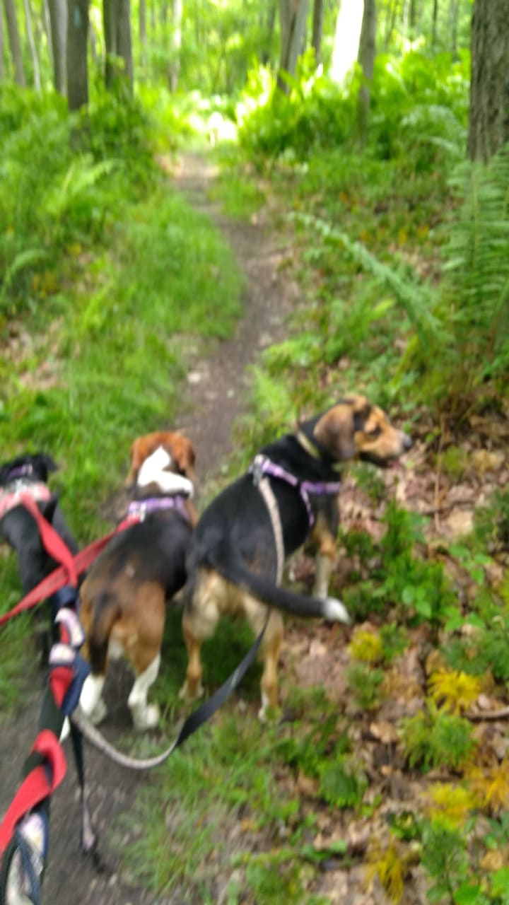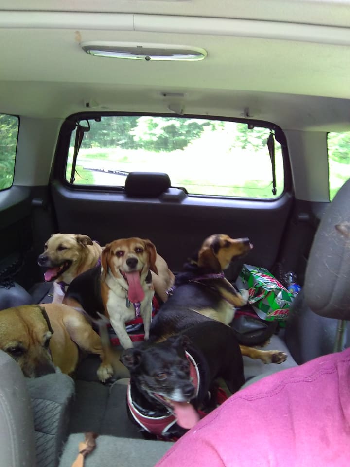 A little about me and my pack. I am a proud mom of five beautiful pups: Cocoa, a 14-year-old boxer mix, Emma, a 10-year-old pit mix, Molly, a six-year-old red tick coon hound, a four-year-old chi-beagle mix named Lil Kimmy and a one and a half-year-old blue tick beagle mix named Rocky. Our adventures usually occur around water features. It is solely to cater to the dogs body temperature. The average temperature for the forestry of Western Pennsylvania in which we hike averages 75 degrees.