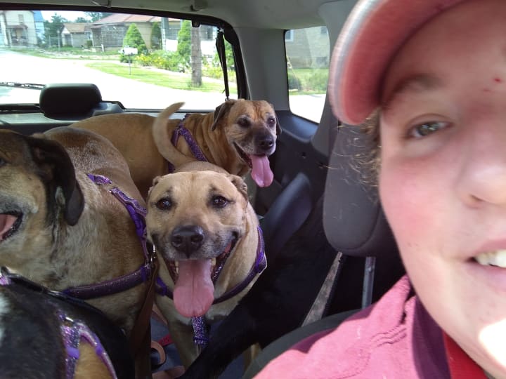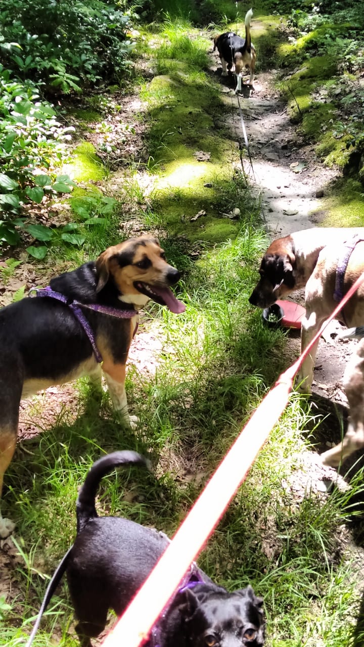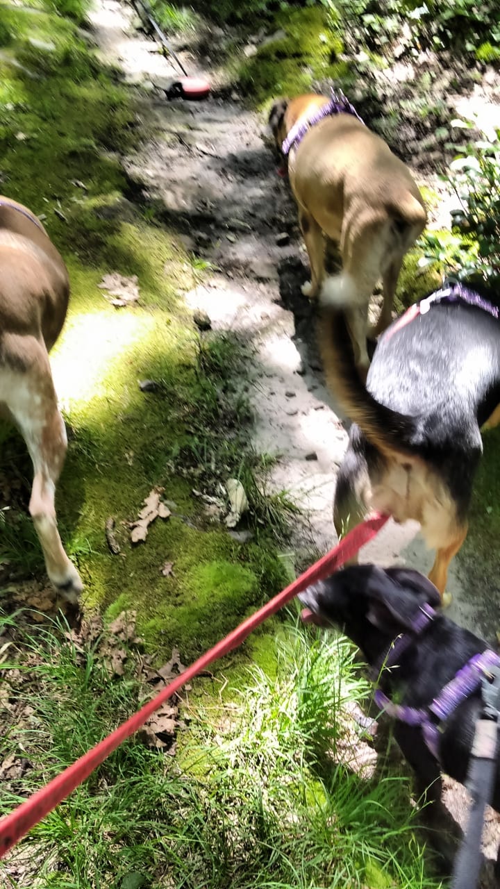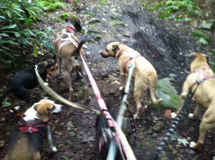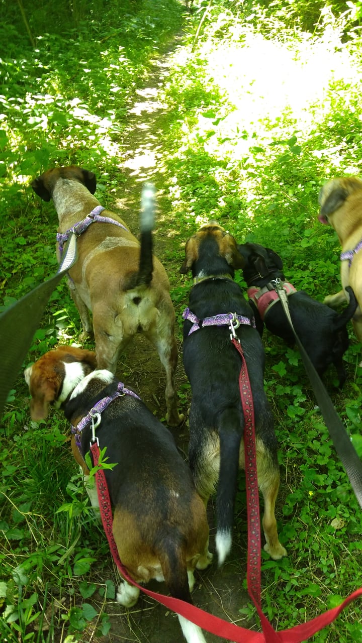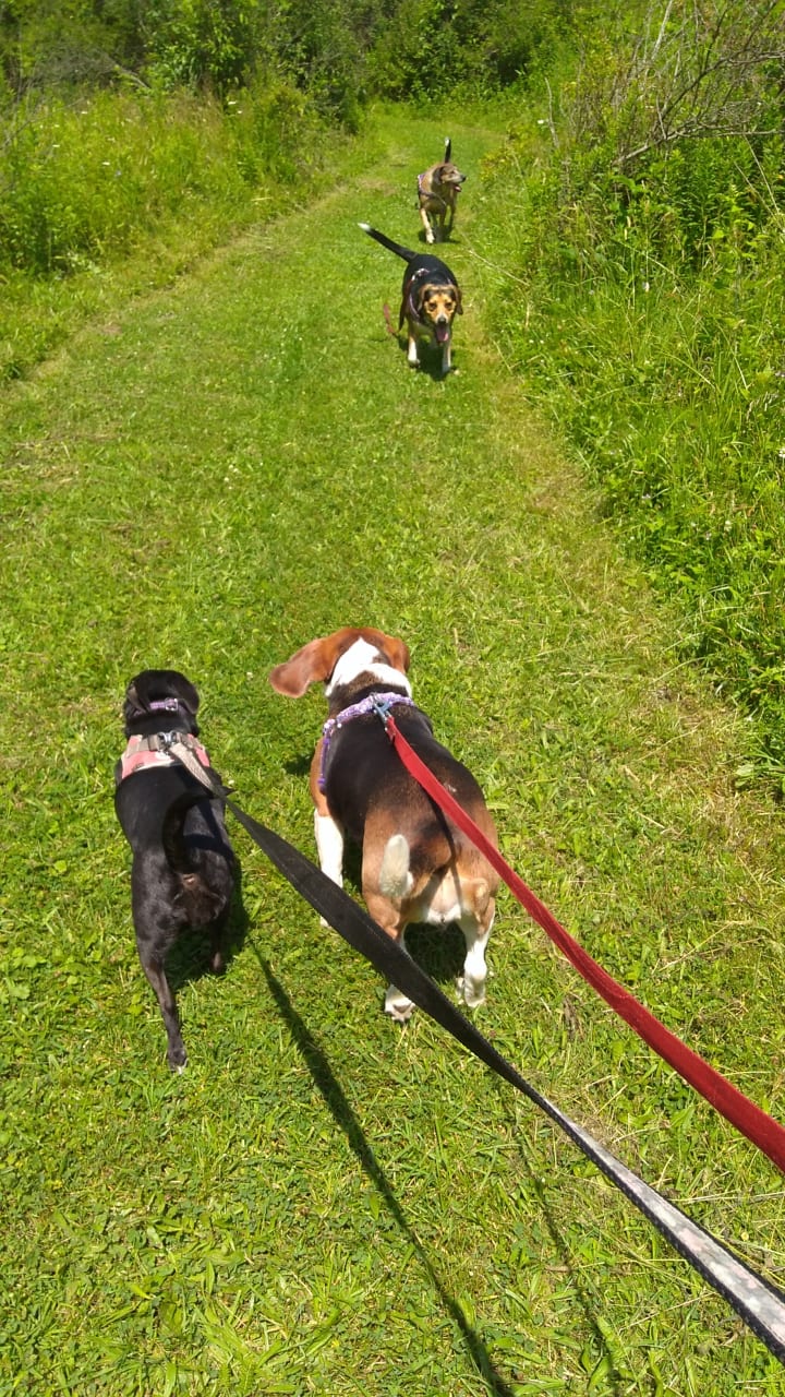 A little about me and my pack. I am a proud mom of five beautiful pups: Cocoa, a 14-year-old boxer mix, Emma, a 10-year-old pit mix, Molly, a six-year-old red tick coon hound, a four-year-old chi-beagle mix named Lil Kimmy and a one and a half-year-old blue tick beagle mix named Rocky. Our adventures usually occur around water features. It is solely to cater to the dogs body temperature. The average temperature for the forestry of Western Pennsylvania in which we hike averages 75 degrees.