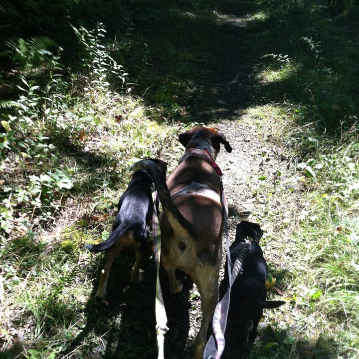 Growing up in an agricultural town, there were dairy farms for miles. I had not experienced the true beauty that has now become my hobby...no my passion...hiking and exploring new trails with my five pups at state parks in the Laurel Highlands. My first introduction to the tranquility of the forest was on a family trip to Tennessee. The Great Smokey Mountains National Park bordered Tennessee and North Carolina. The mountains were so vast and secluded. The mist flowed off the mountain tops and as a child I was scared. I never saw such beauty and never had I been immersed in the wildlife like I saw there. A black bear mom and her three cubs walked right in front of my family's car while we were sitting and eating lunch at the state park. The white-tailed deer were so abundant that you could see them around every curve while my dad drove and the sound of the rapids ran wild in the distance and to me, time felt like it stood still, almost careless. I had forgotten about that thrill for years. I stumbled upon a picture of that day in the Smokey Mountains when I was surrounded by beautiful trees that had delicate water droplets on their leaves, wild life, and family. I could not shake that feeling of exhilaration remembering exploring the woods around our camping area, getting my hands dirty and breathing in the air that only being in a forest can explain. Now in my life today, there is no place my dogs and I won't go to explore. Being in the woods is like being transported to a very tranquil out of your head kind of experience.