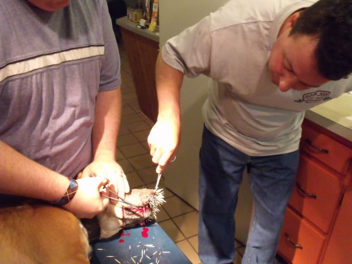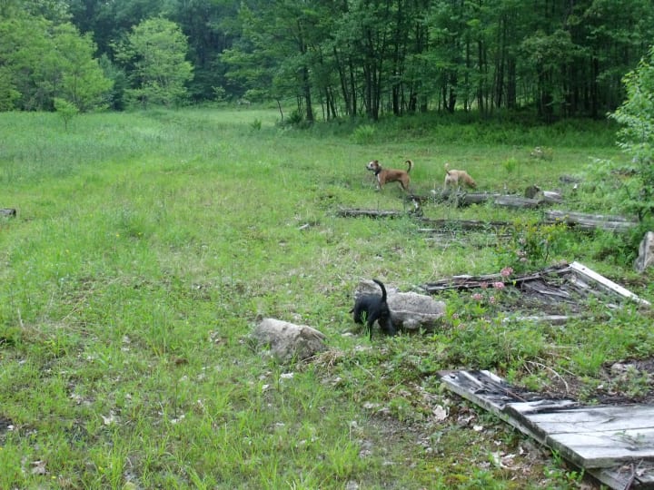 The trails we enjoy have rocky terrain and are a challenge. Taking five pups on a hike these trails, it's all about proper planning. If you hike with an animal you are going to want to pack a few key essentials such as several bottles of water or a thermos with a filter on it for fresh water. There are backpacks for dogs to carry their own items for the hike. IDs on the dogs are essential for if there was a chance your dog got separated. Know the animals that are prevalent in the season your hiking in. The Laurel Highlands are known for bear, deer, porcupine, bobcats, timber rattle snakes, copper head snakes, and coyote. I made the mistake of taking my dogs hiking in the evening about 7:30ish. We hiked about three miles into the forest and came to a clearing in a marsh area of the park. Well, that terrain is a perfect habitat for porcupines. Four out of my five dogs ran after the giant porcupine and ended up getting a mouth, face, and paw full of quills. I was able to get them away from the porcupine but had to walk the three miles to the SUV. They kept hitting the back of their legs with the quills. I had to rush them to Lakeview Vet Care. The vet opened up the closed practiced and had my husband and I, as well as himself, pull the quills out. Porcupines have 30,000 quills and are nocturnal. The porcupine in this event walked away just with a few less quills. I look forward to continuing to show more pictures and to write about our other adventures.