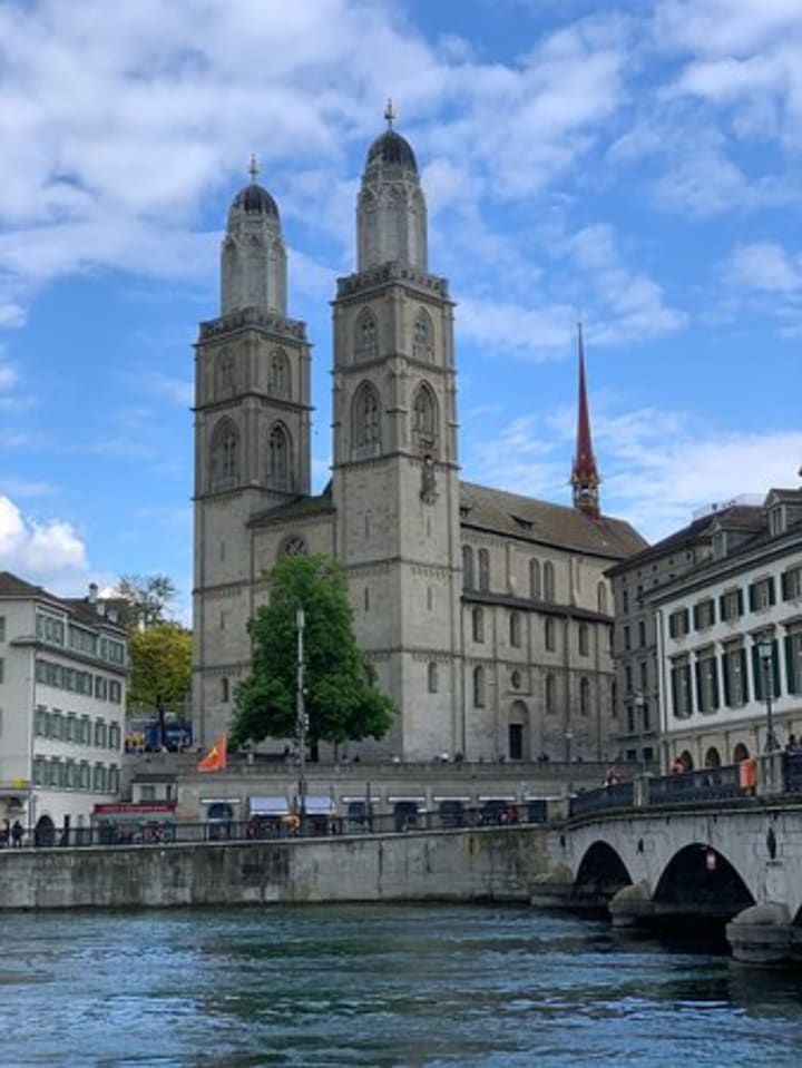 The twin towers of Gorssmunster are Zurich’s landmark. This cathedral was founded by Charlemagne in the 9th century. It sits right across the river from Fraumunster. Inside you can see stained-glass work by Augusto Giacometti. For spectacular views, you can climb the southern tower, the Karlsturm.
