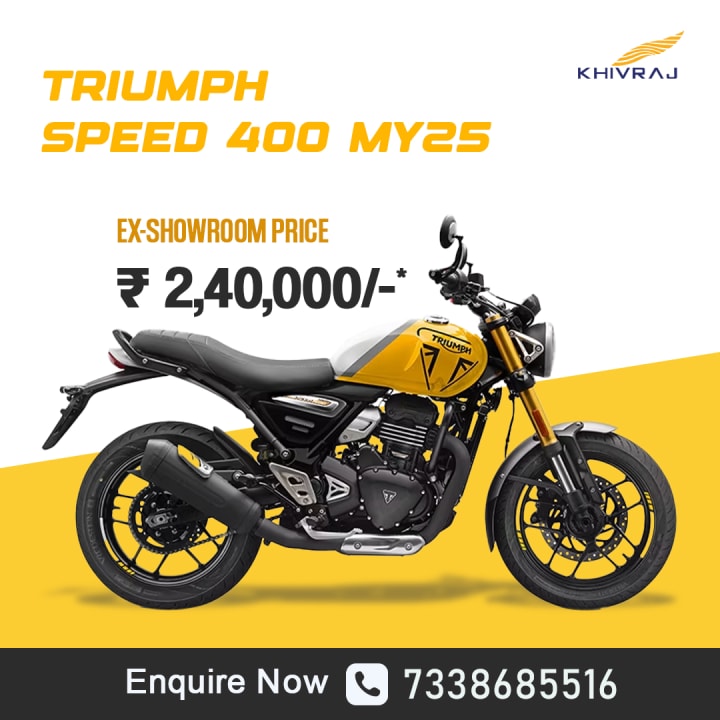 Triumph Speed 400 MY25: The Speed 400 MY25 has an elegant, understated appearance. Its compact frame and clean lines make it a perfect choice for city riders who prefer understated aesthetics. Even while it isn't as brash as the T4, it still has Triumph's distinctive flair and has a sleek, contemporary appearance.