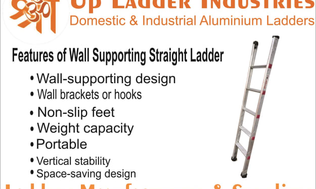 A wall-supporting straight ladder is designed to lean against and be supported by a vertical surface, providing a stable climbing solution for accessing elevated areas.