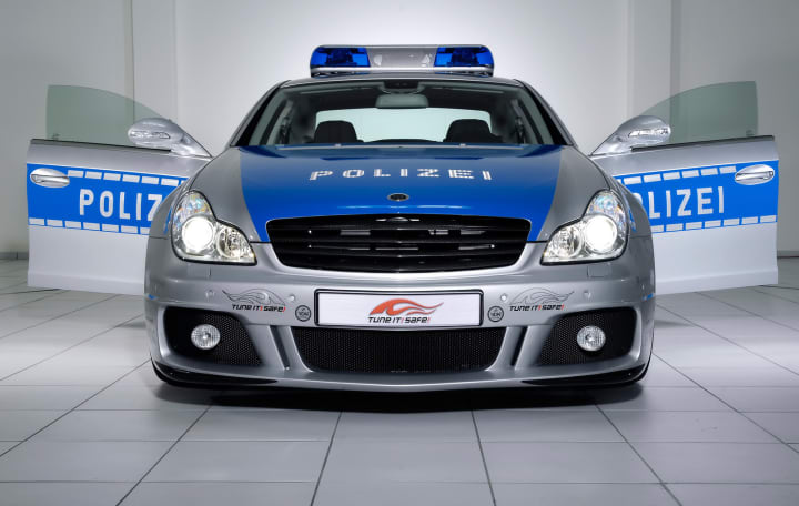 The crown jewel of Germany's police force, though, is the Mercedez-Benz Brabus Rocket. Each of these babies costs over half a million dollars, but for that price tag, you get a massive V12 Biturbo engine that can pack as much as 228 miles per hour. Vroom, vroom!