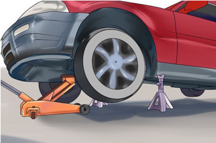 b. Raise your vehicle with approved jack stands