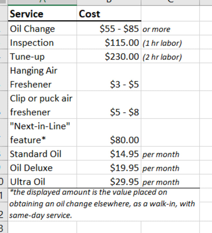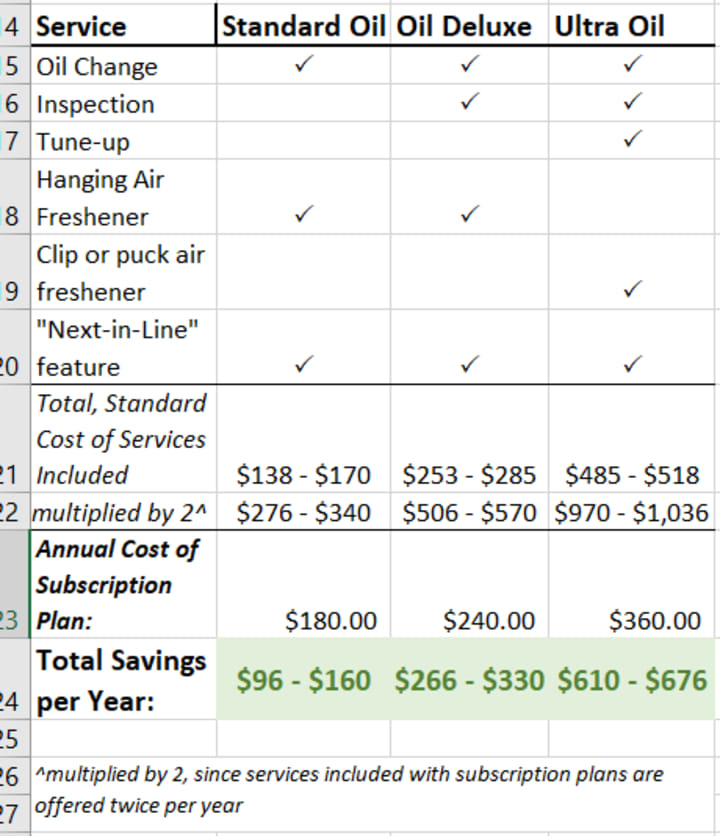 Paying a small monthly subscription fee, rather than the full cost of an oil change, inspection, or tune-up, is beneficial to both consumers and the repair shop.