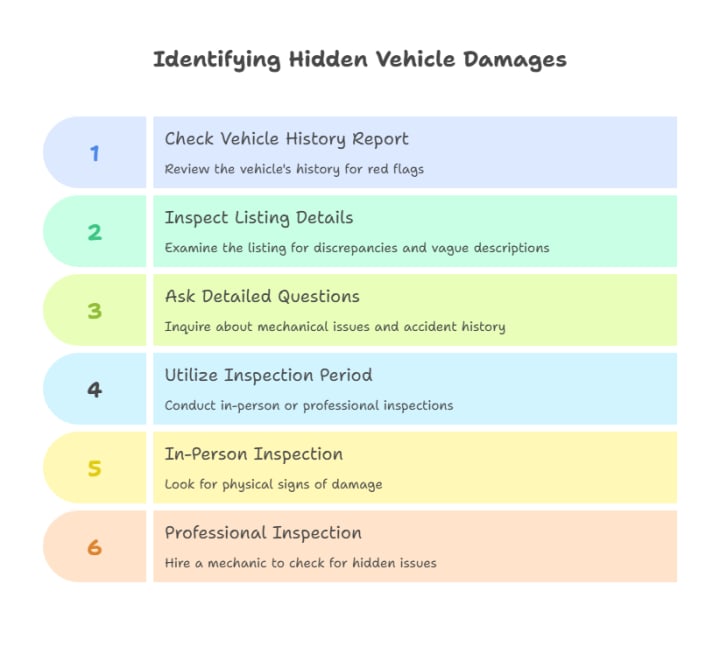 A: Frame damage, flood damage, poor collision repairs, and mechanical failures are among the most frequent hidden issues.