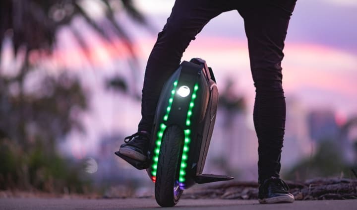 It has bluetooth along with a built-in 20w speaker. Also, it offers the facility to manage controls using the app. The unicycle has been integrated with a 4-layer motherboard, offering 4200W peak power output. Another interesting feature is the RGB lighting system with colorful lights for turning, breaking along with a bright headlight.